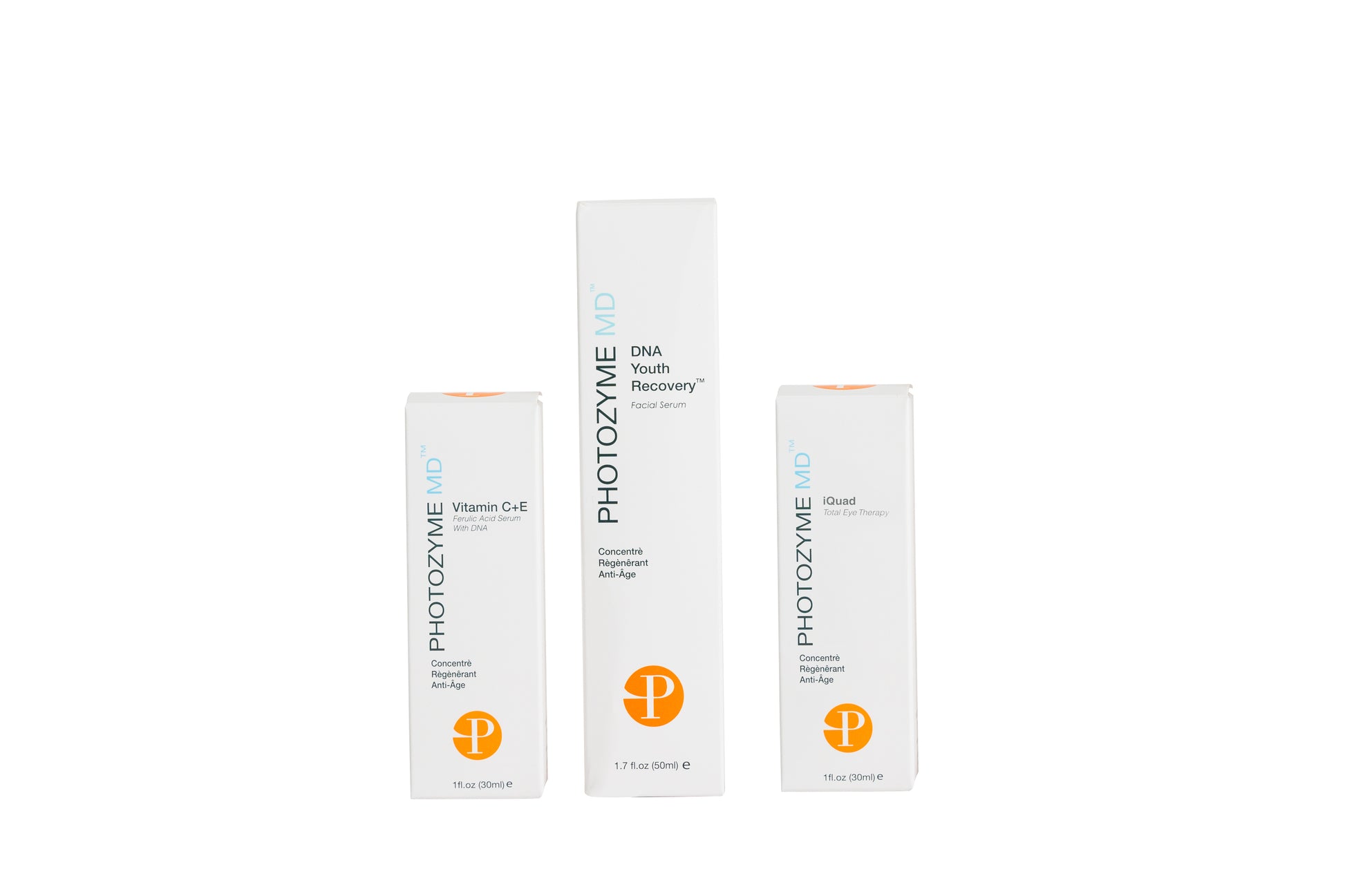 Revitalize your skin with the ultimate Biohacking package. Includes DNA Repair Photozyme to combat damage, Vitamin C + E Ferulic Acid Lotion for antioxidant protection, DNA Youth Recovery Facial Serum to promote collagen, and iQuad Total Eye Therapy to reduce fine lines and dark circles. Achieve a youthful, glowing complexion at a special price!