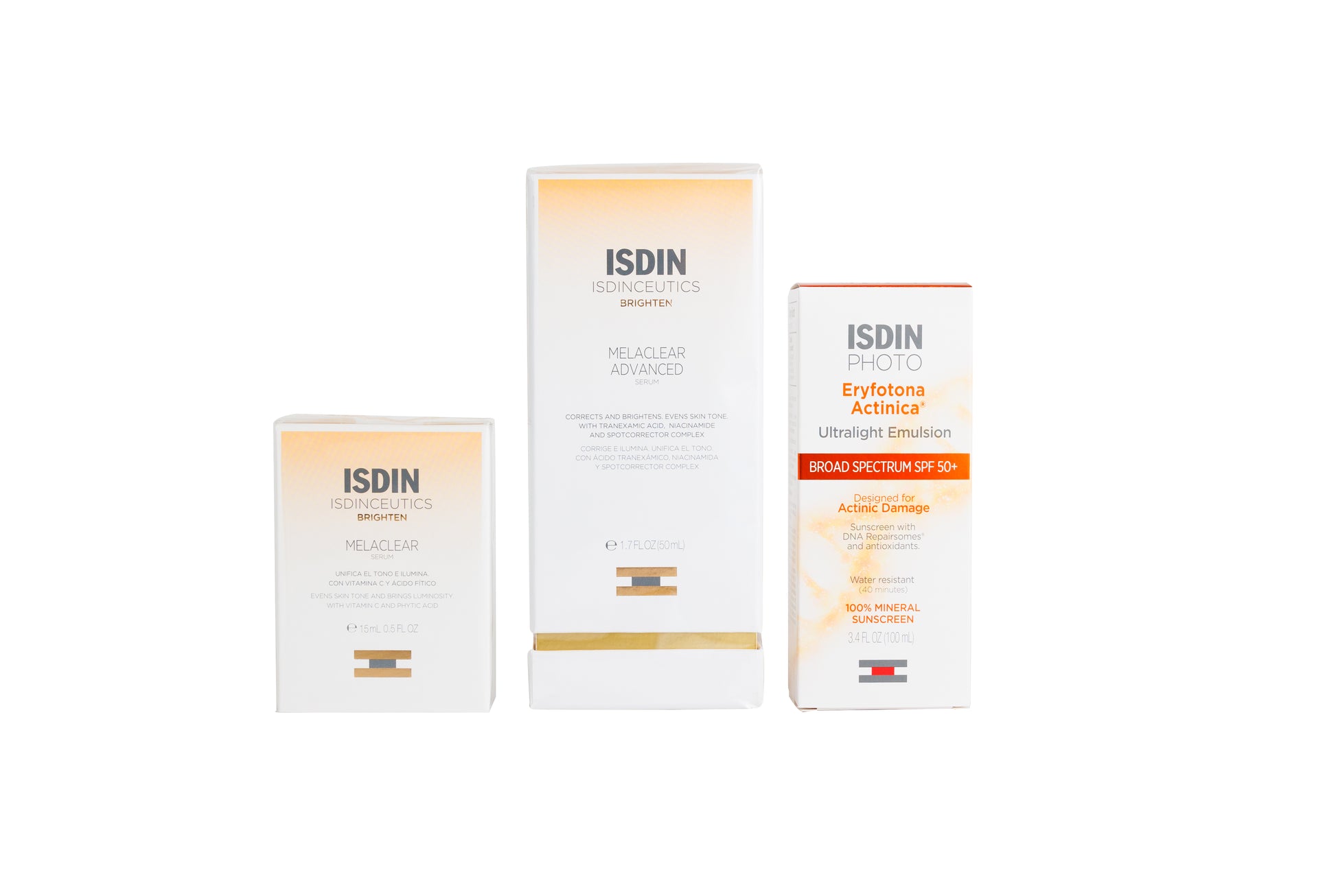 - ISDIN Melaclear: A lightweight serum formulated to fade dark spots and improve skin tone, revealing a luminous, radiant complexion.